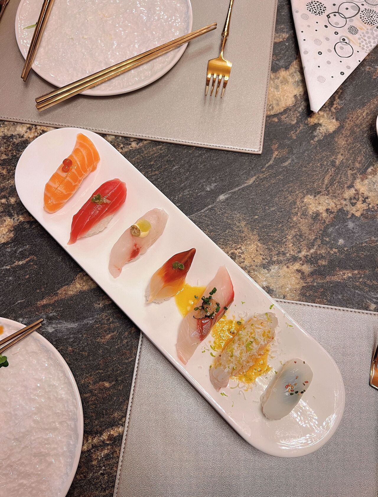Mimio Sushi dispone di ambienti ampi e curati, molto eleganti con dettagli in nero e oro..